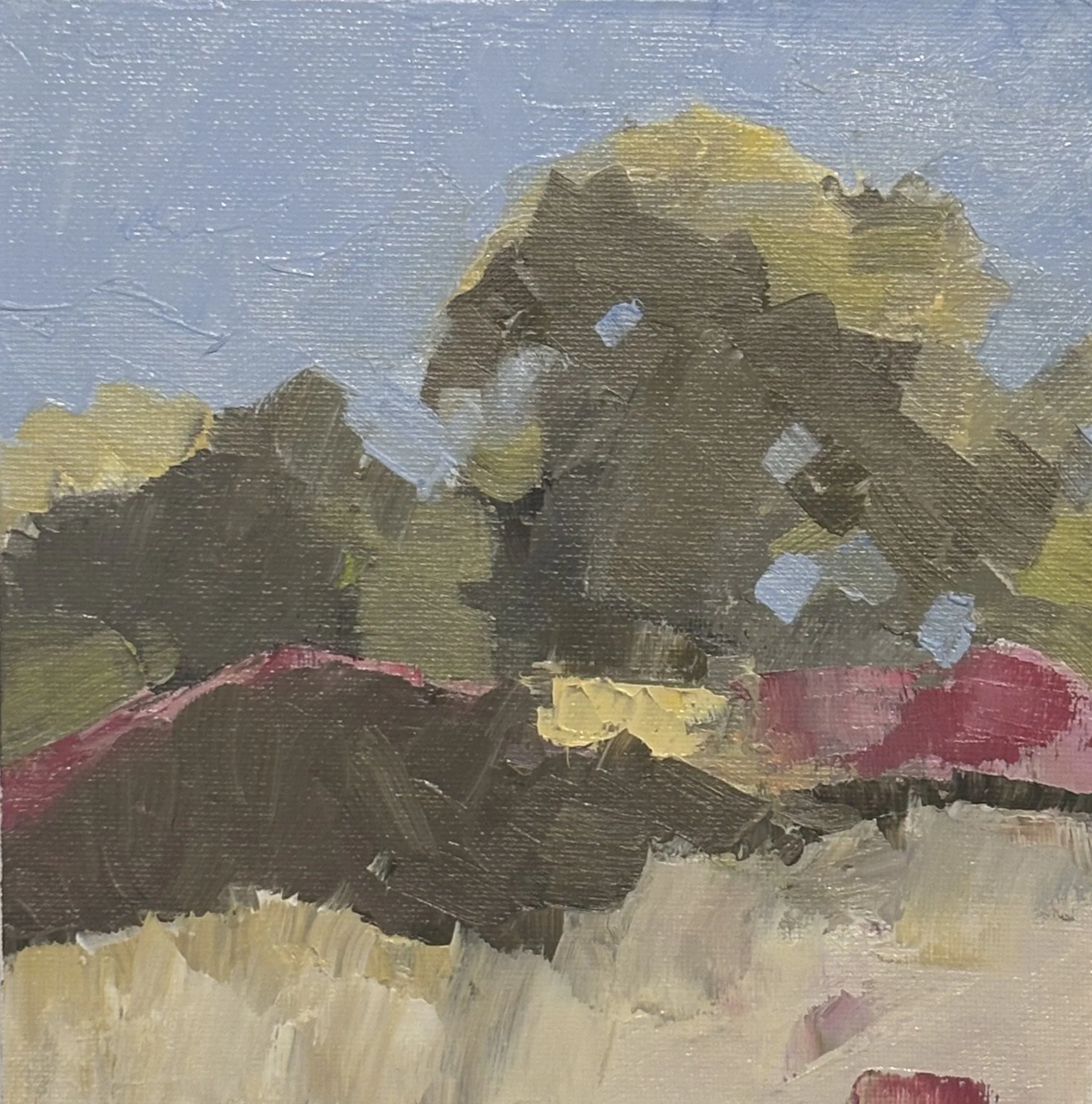 A small study in preparation for a large oil painting. Oil on canvas paper.