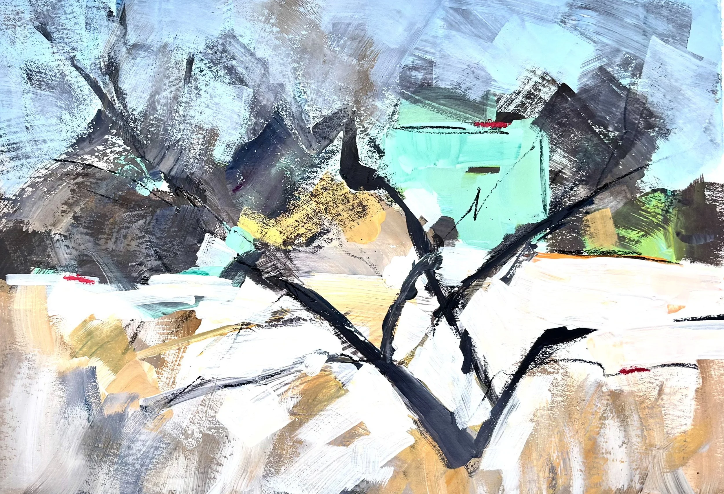 River Walk February 26, 2026 Working alla prima with casein on watercolor paper, a great new adventure in painting.